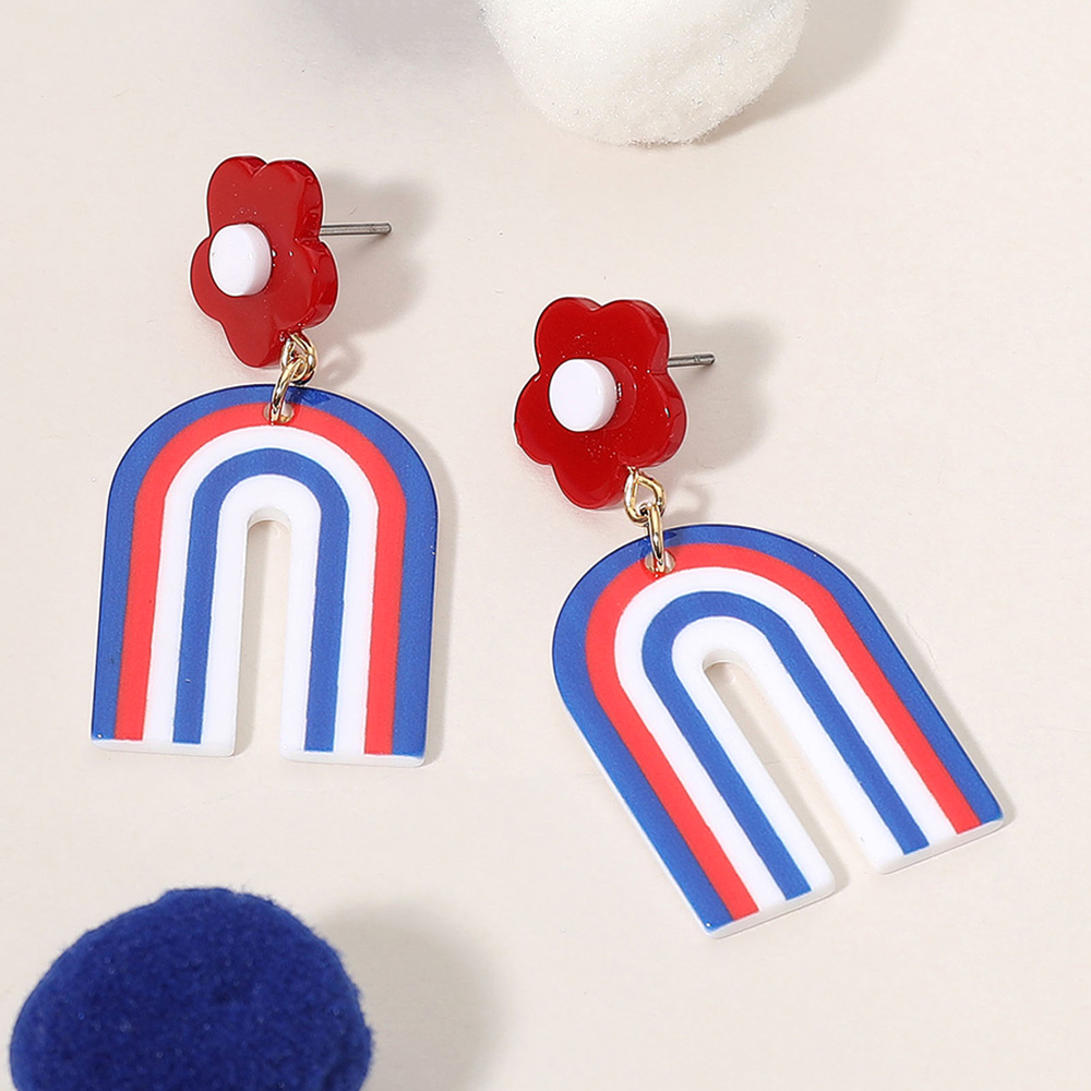 American USA Flag Colored Resin Flower Arch Drop Dangle Earrings
