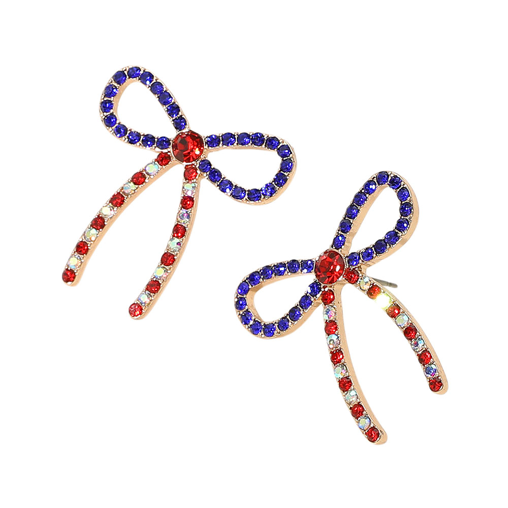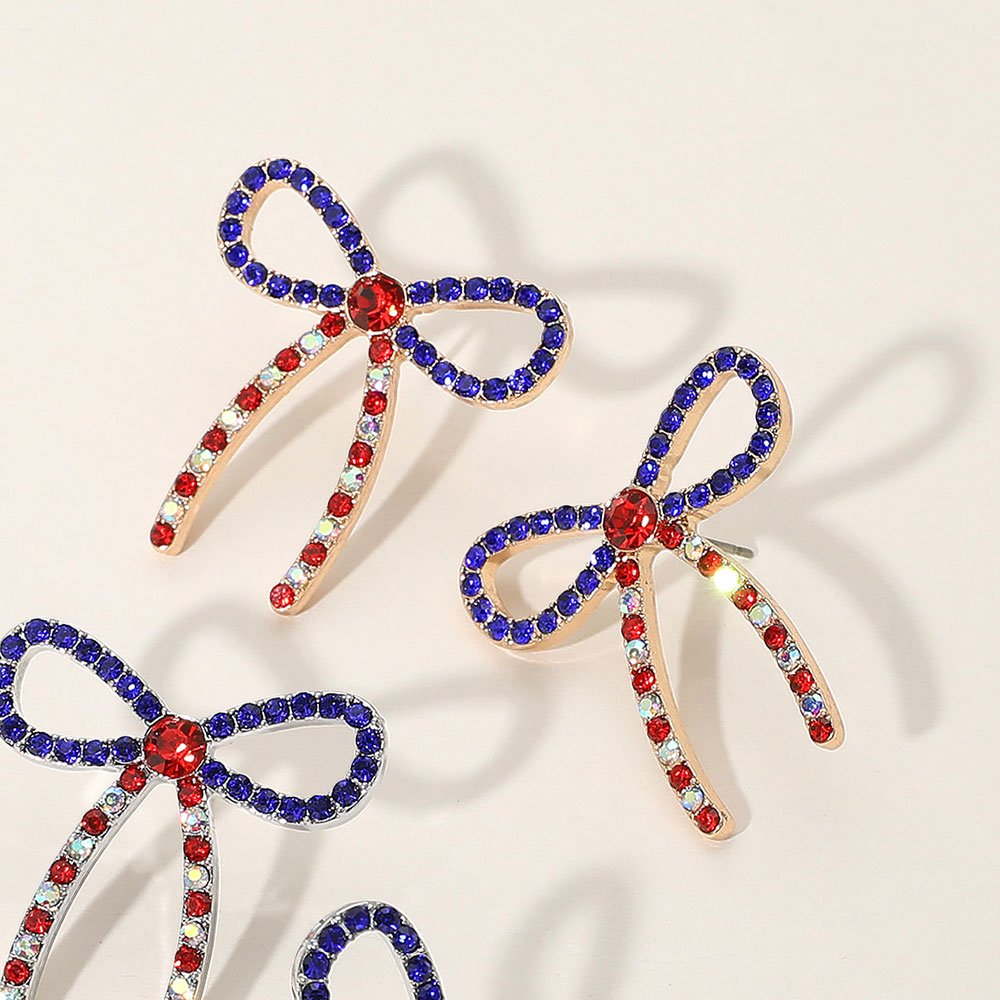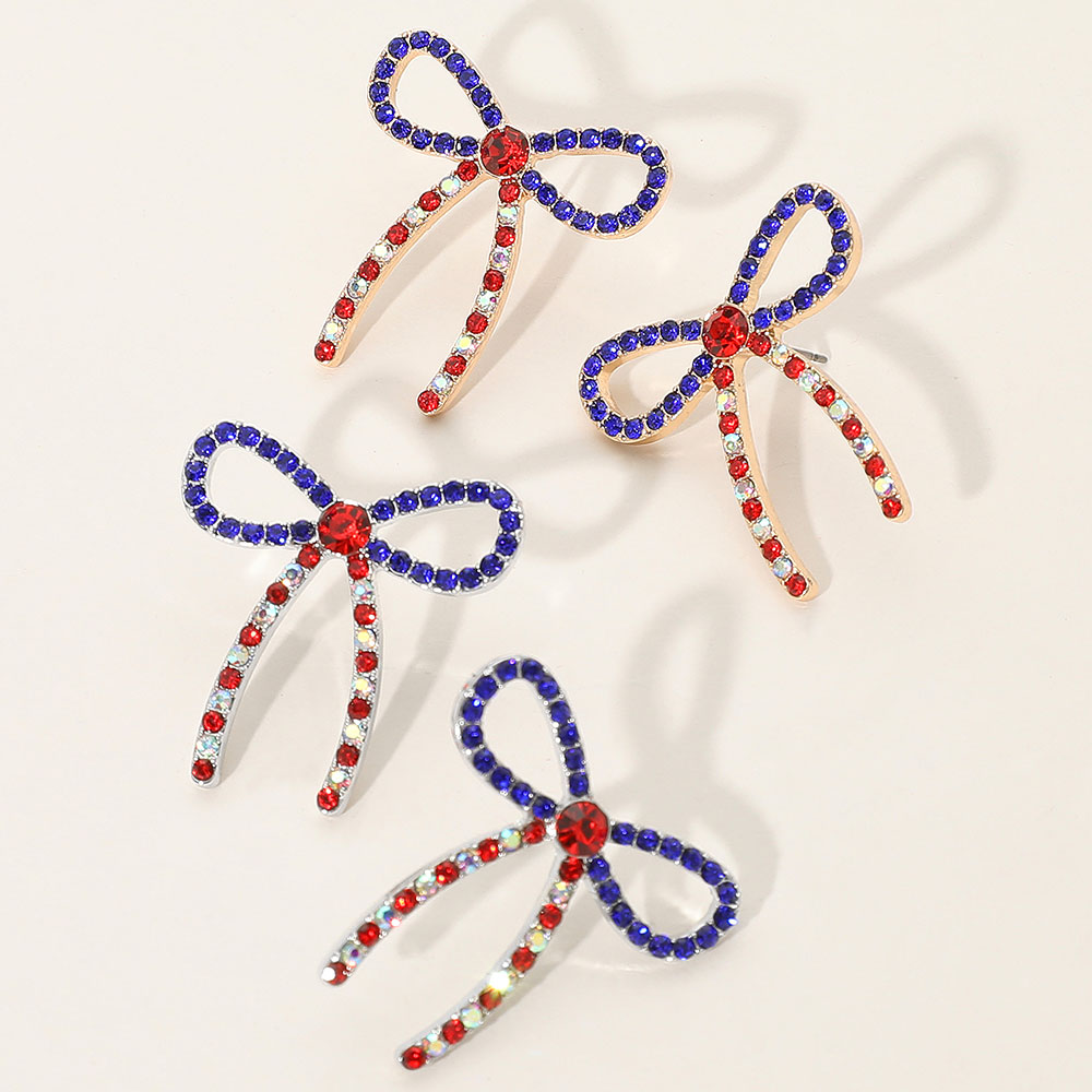 2Pairs - Metal Wire Bow Pearl Stud Earrings