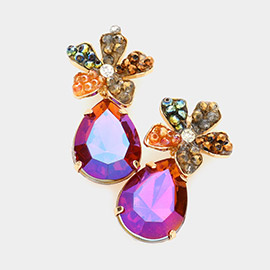 Beaded Flower Teardrop Stone Link Dangle Earrings