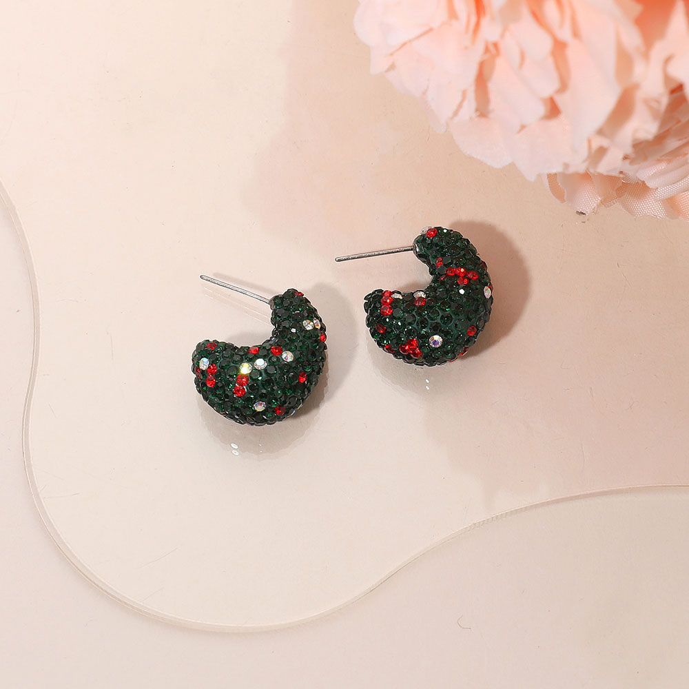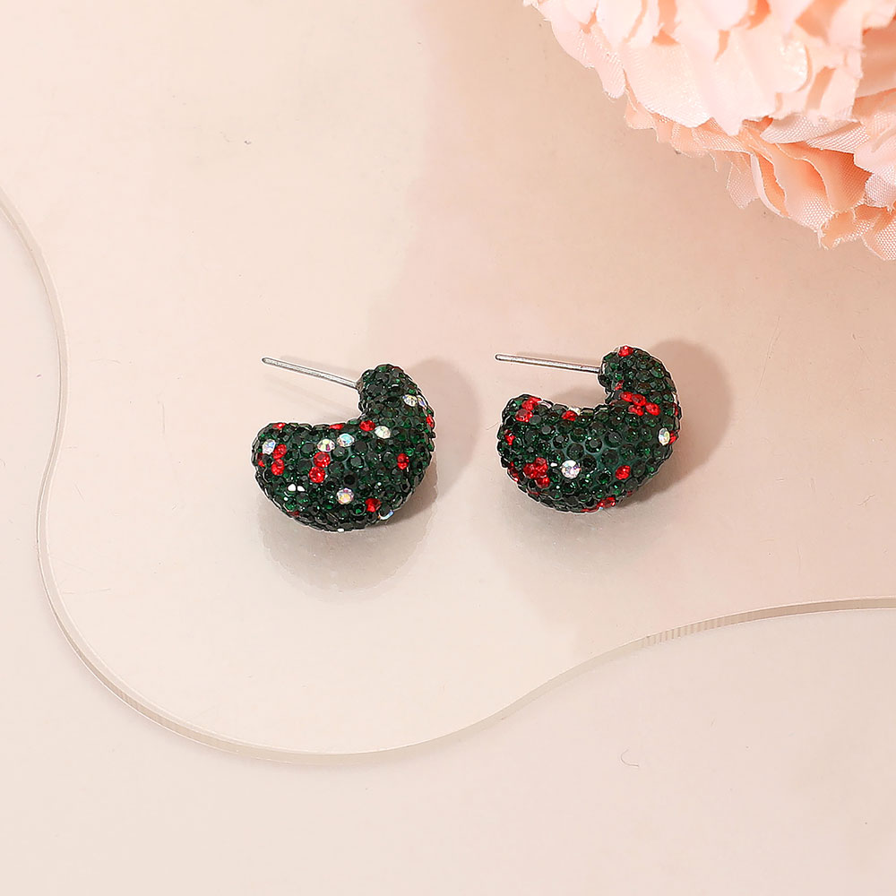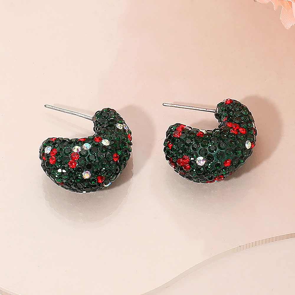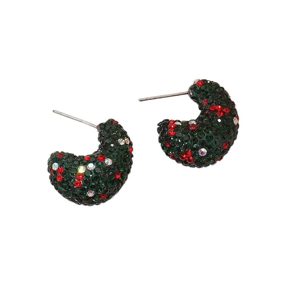 Bling Studded Small Chunky Teardrop Holiday Hoop Earrings