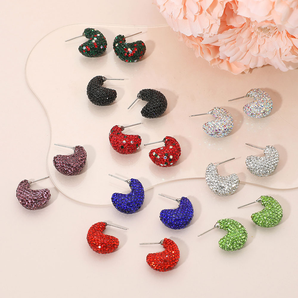 Bling Studded Small Chunky Teardrop Holiday Hoop Earrings