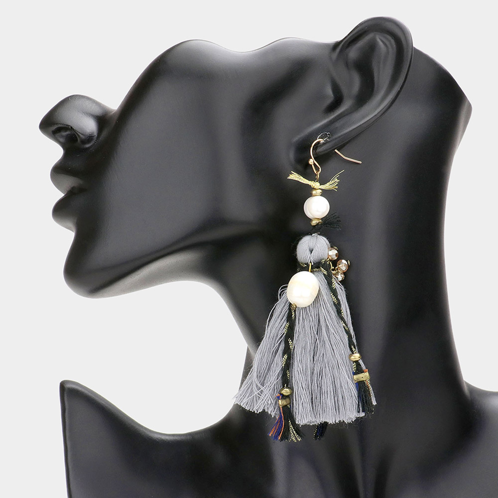 Bold Pearl Accent Floral Pendant Center Abstract Pebble Link Y Shape Statement Necklace