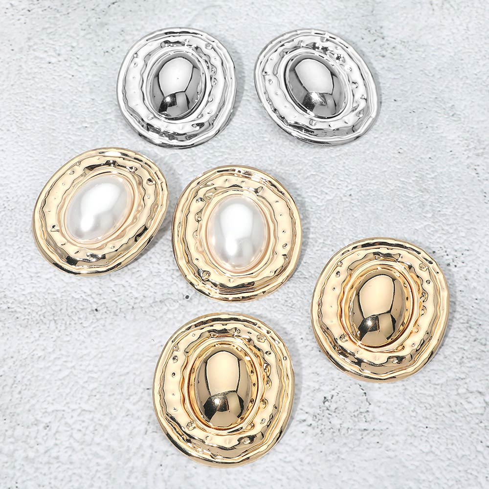 Bold Center Pearl Accent Oval Statement Earrings