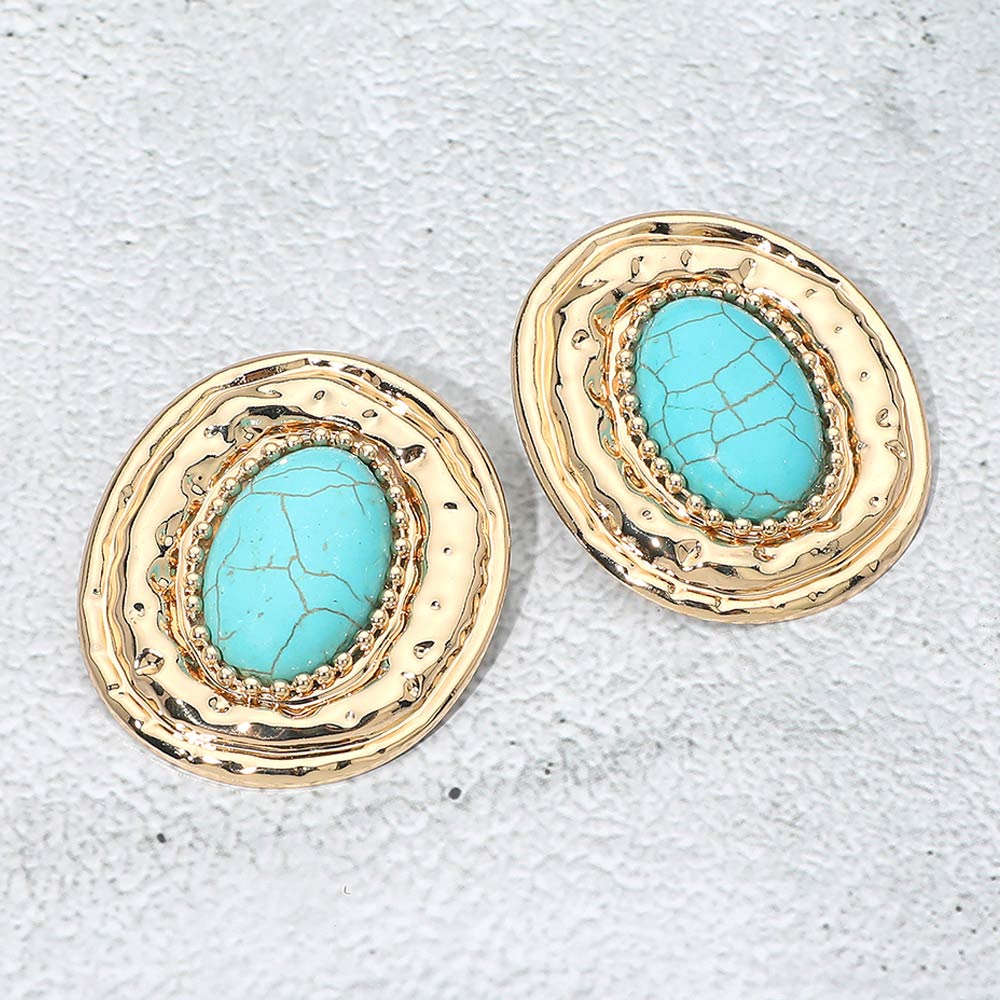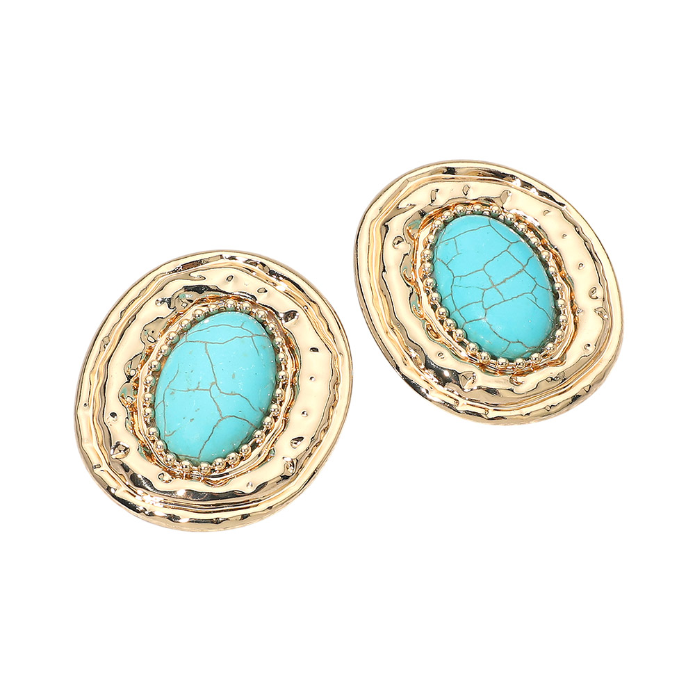 • These oval statement earrings feature a bold center stone framed by an organic textured border for an elevated, artisanal look. Designed to add instant impact without bulk, they are perfect for boutiques seeking versatile statement studs that transition effortlessly from casual outfits to dressed-up occasions.