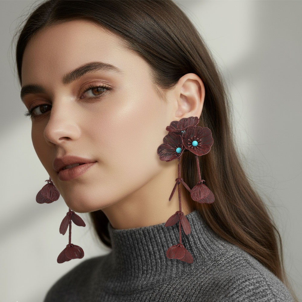 • Turn heads with these Statement Floral Dangle Earrings, designed with layered petal detailing for a bold yet elegant look. Perfect for special occasions or chic evenings out, these earrings exude sophistication and artistic flair, adding a graceful finish to any ensemble.