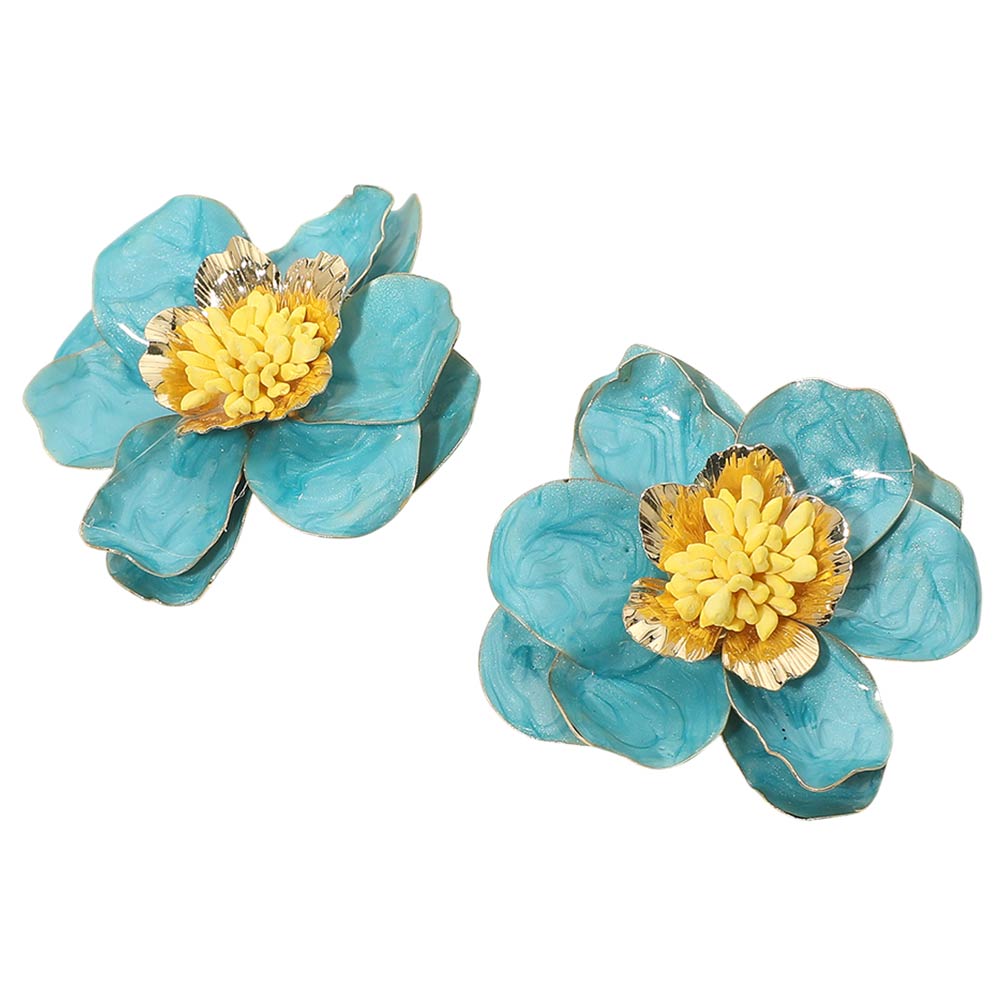 Bold Enamel Flower Statement Earrings