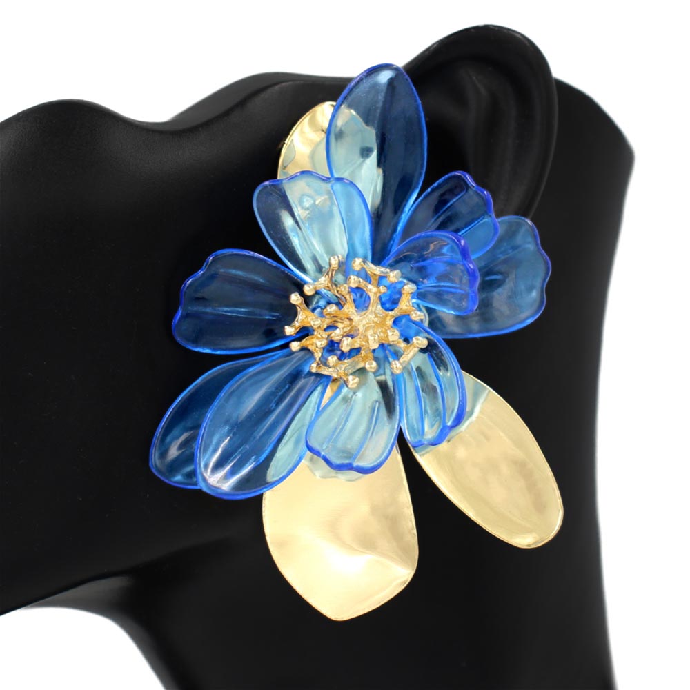 • Bold floral drop earrings designed with layered petal shapes and sculptural details for standout fashion styling. Ideal for boutiques, seasonal displays, special occasions, and statement looks, these earrings add dimension and elegance to both casual and dressy outfits.