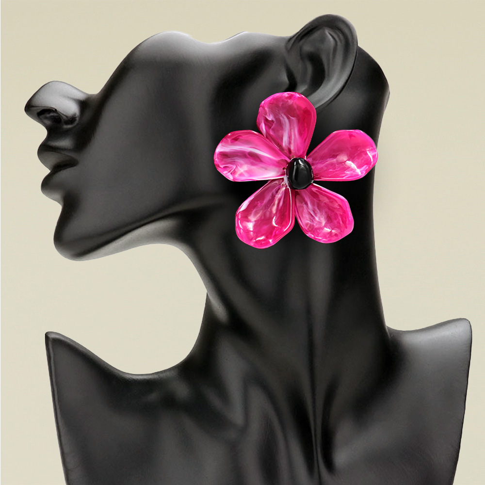 • Bold statement earrings featuring large petal-shaped floral design with glossy finish. Perfect for elevating any outfit, these eye-catching earrings add a touch of artistic flair and elegance, ideal for special occasions, photoshoots, or standout fashion looks.
