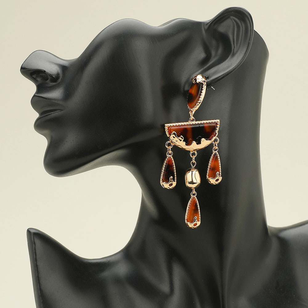 Details • Size : 1.4" X 3.4" • Post Back • Modern geometric drop earrings featuring sculpted accents and teardrop dangle details, designed to add a bold and stylish touch to any outfit. Perfect for statement looks, these earrings blend artistic flair with contemporary fashion appeal. • Lead and Nickel Compliant