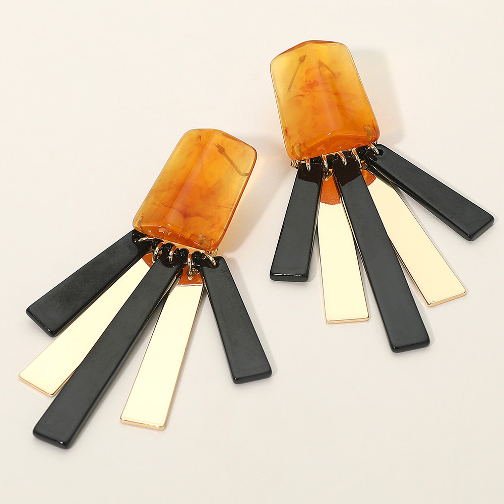 Bold Geometric Resin Metal Bar Fringe Statement Earrings