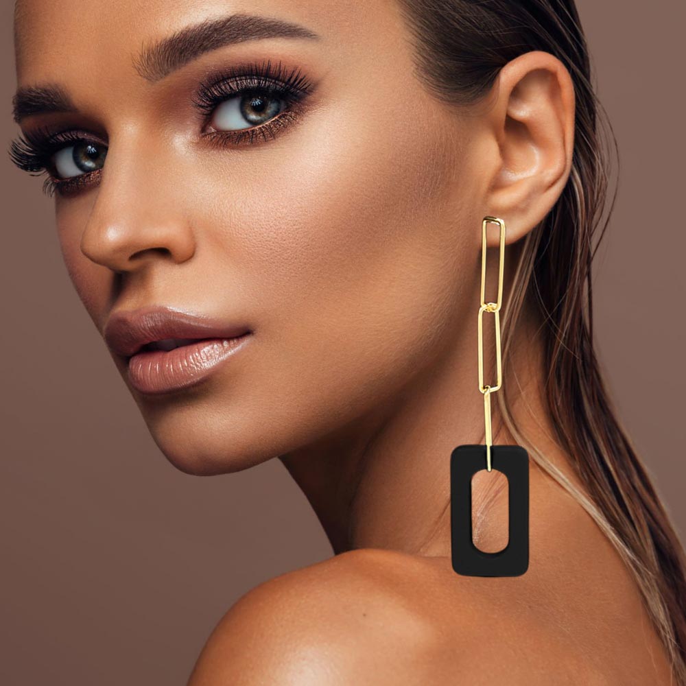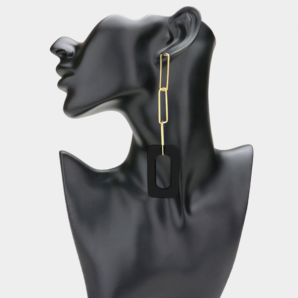 Bold Resin Square Link Paperclip Chain Drop Earrings