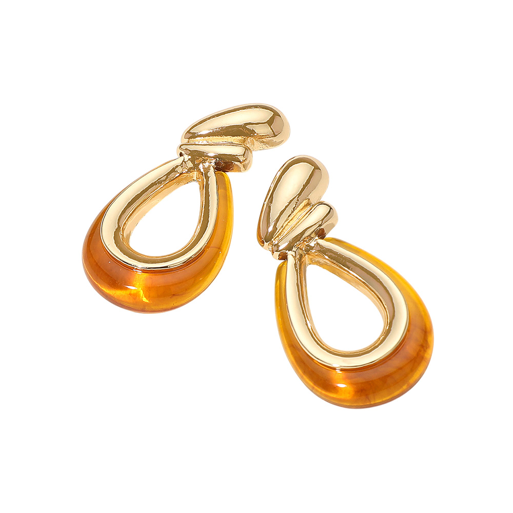Round Stone Accented Abstract Resin Teardrop Drop Earrings