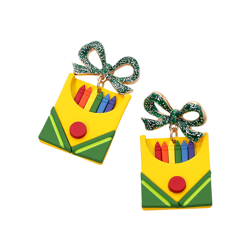 Bow Crayon Box Drop Dangle Earrings Bow Crayon Box Drop Dangle Earrings