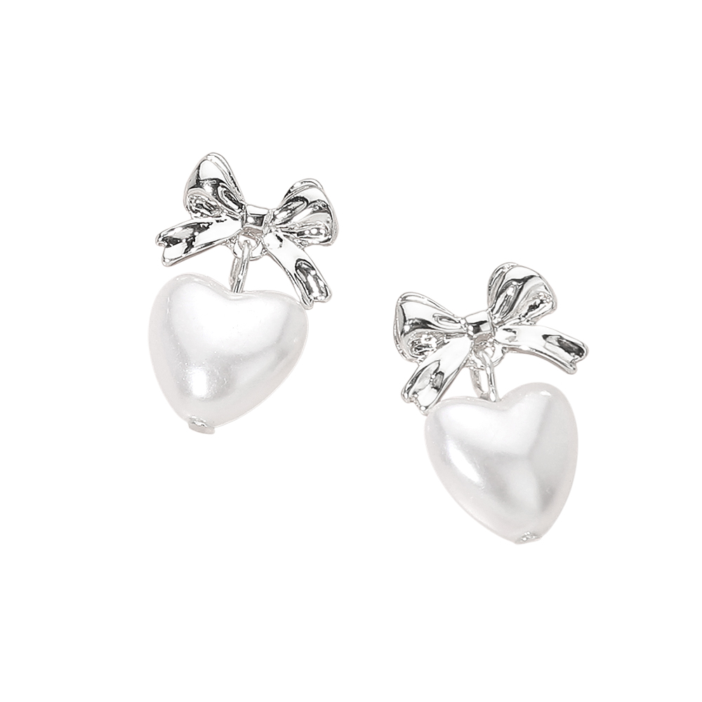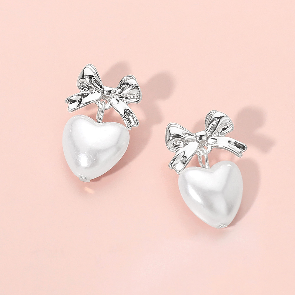 Bow Pearl Heart Drop Dangle Earrings Bow Pearl Heart Drop Dangle Earrings