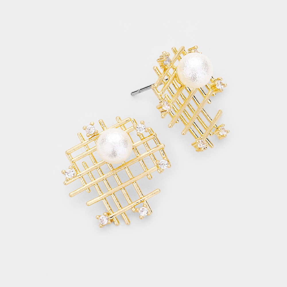 Stone Embellished Quatrefoil Pendant Pointed Pearl Necklace