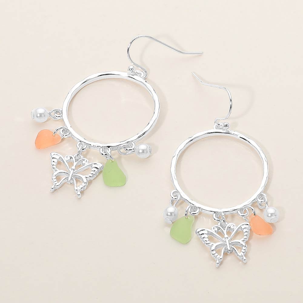 Butterfly Sea Glass Charm Drop Open Ring Dangle Earrings Butterfly Sea Glass Charm Drop Open Ring Dangle Earrings