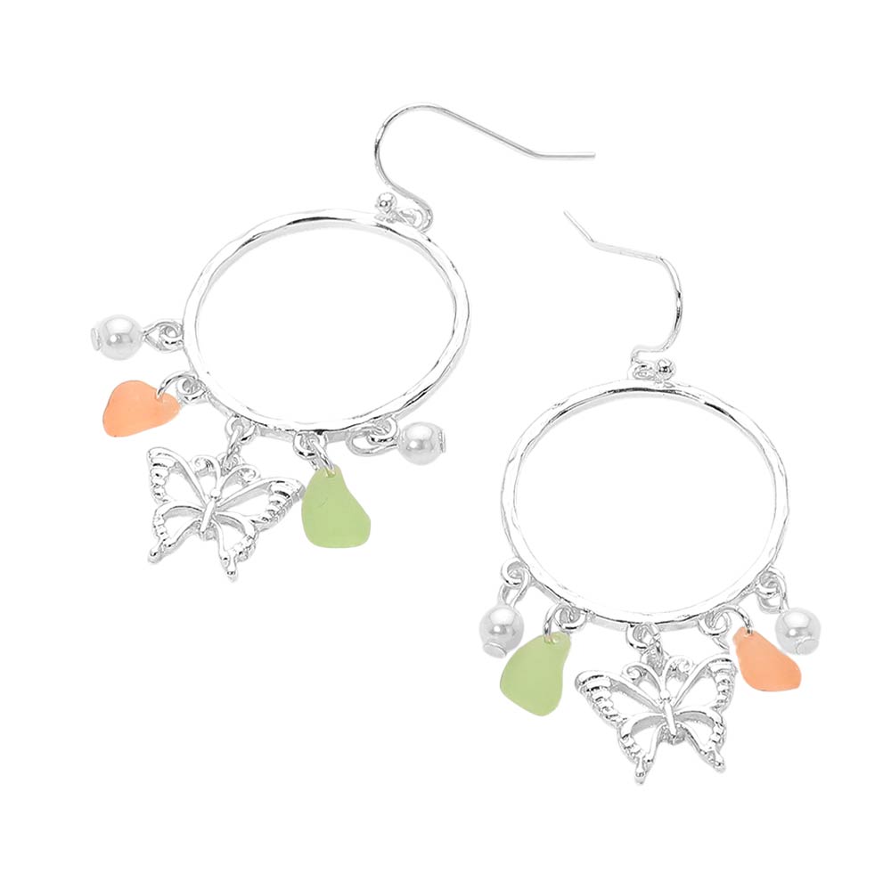 Butterfly Sea Glass Charm Drop Open Ring Dangle Earrings