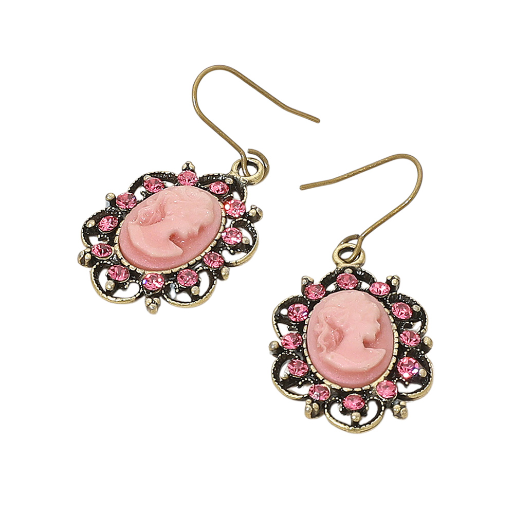 Crystal Trim Vintage Cameo Dangle Earrings