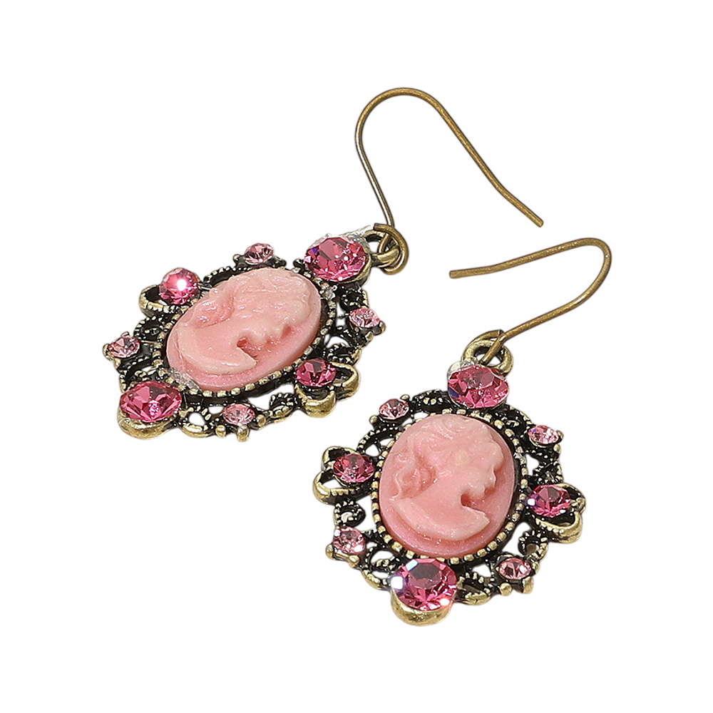 Details • Size : 0.8" X 1.8" • Fish Hook Back • Made In U.S.A • Elevate your look with these vintage-inspired cameo drop earrings featuring intricate frames and a classic silhouette design. Perfect for those who love timeless elegance, these earrings add a touch of antique charm and sophistication to both casual and formal outfits.