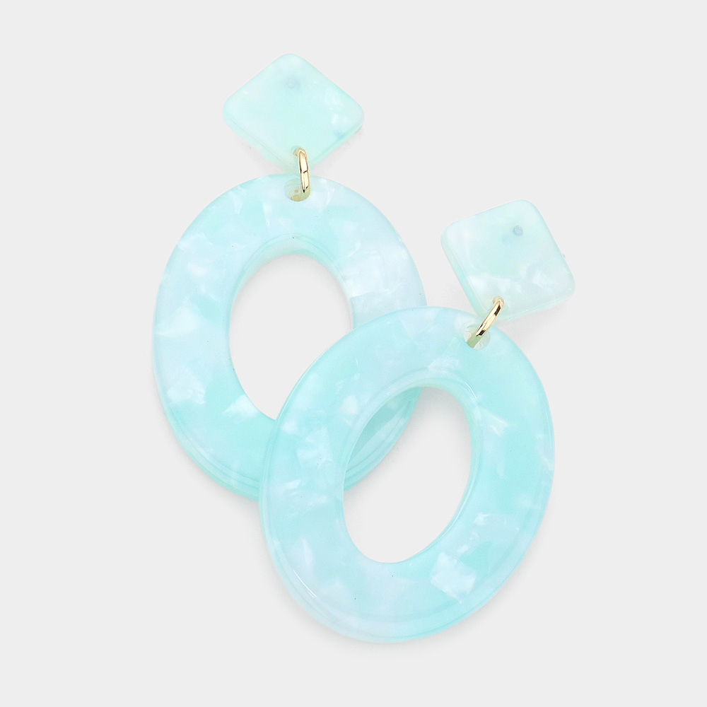 Celluloid Acetate Square Open Oval Link Dangle Earrings