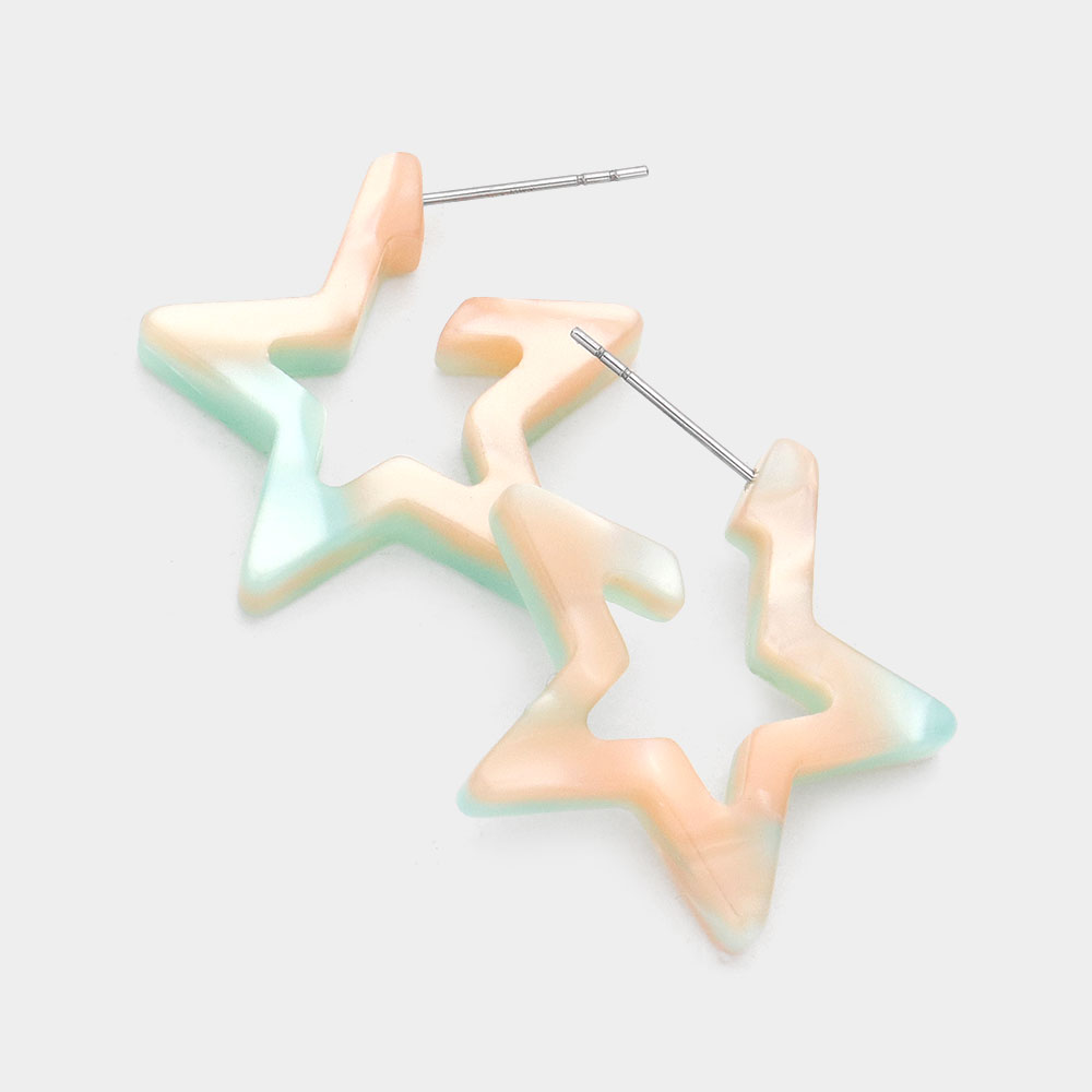 Rhinestone Embellished Celluloid Acetate Open Circle Dangle Earrings