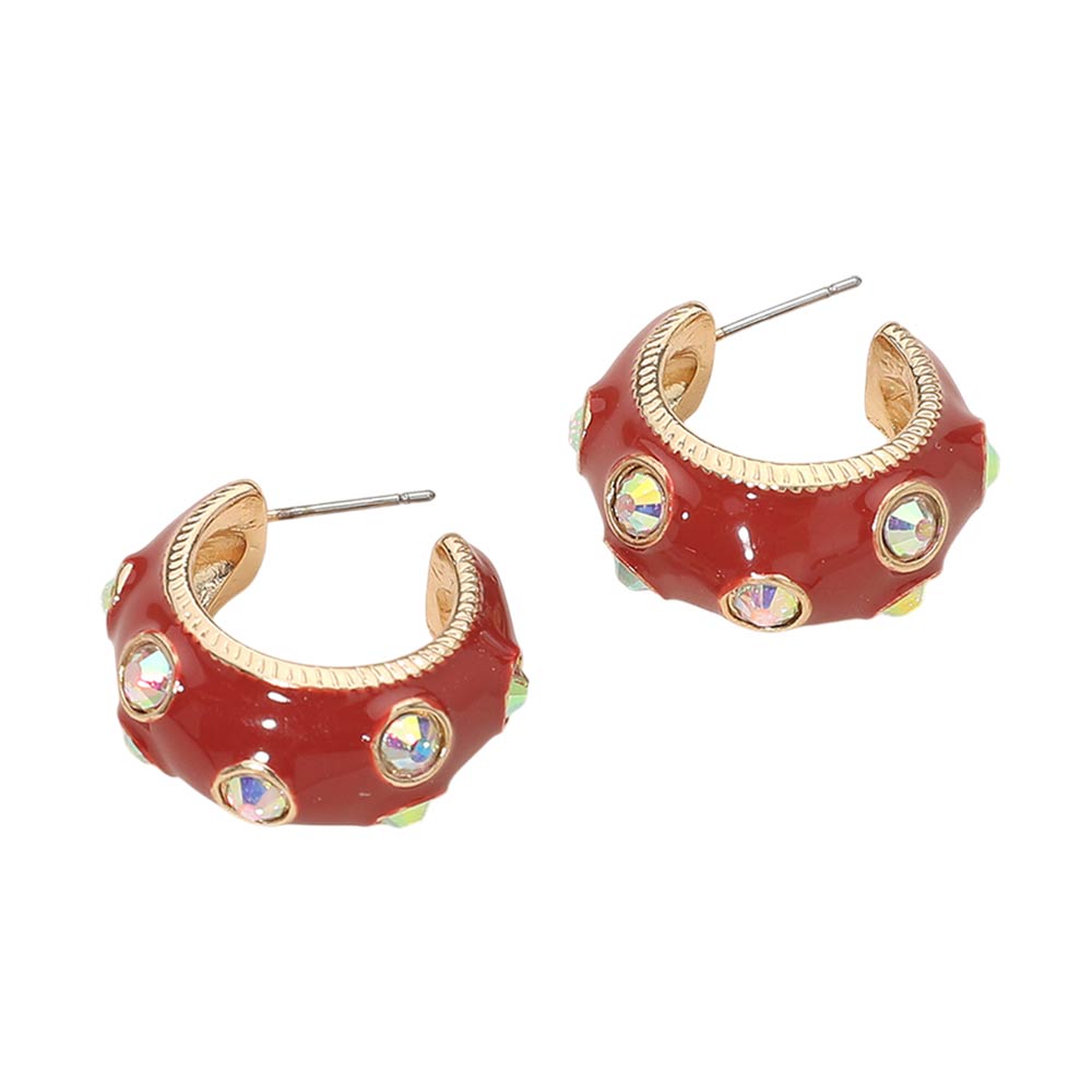 • Bold huggie hoop earrings designed with raised detailing and sparkling accent elements for a standout statement look. The compact hoop shape offers comfortable wear while adding eye catching texture and shine. Ideal for boutique collections, trend driven styling, gifting, and special occasions. A modern accessory that elevates everyday outfits with confident, fashion forward appeal.