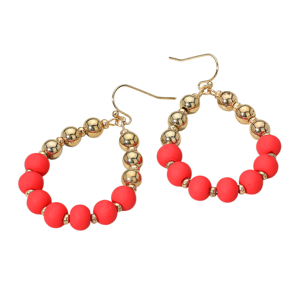 Details • Size : 1.3" X 2.2" • Fish Hook Back • Add bold charm to your look with these beaded hoop earrings featuring smooth matte beads paired with polished metallic accents. Lightweight and stylish, they’re perfect for everyday wear or special occasions, offering a versatile accessory that complements any outfit. • Lead and Nickel Compliant