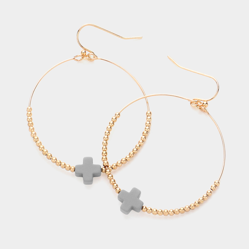 Cross Pointed Metal Ball Beaded Wire Circle Dangle Earrings