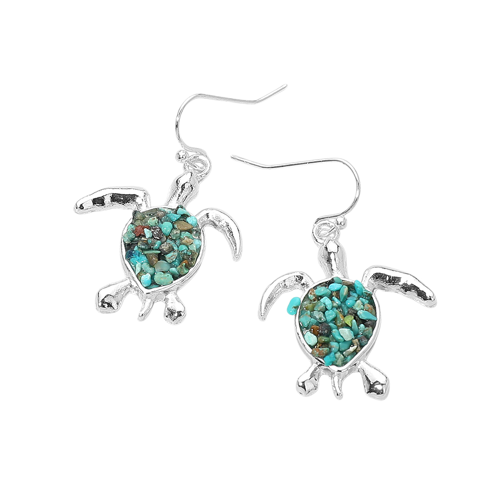 Crushed Pebble Sea Turtle Dangle Earrings Crushed Pebble Sea Turtle Dangle Earrings