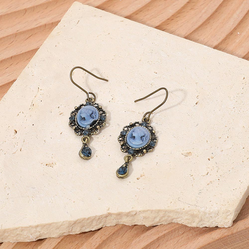 Details • Size : 0.6" X 1.6" • Fish Hook Back • Elegant vintage cameo drop earrings featuring detailed profile portraits framed with sparkling rhinestones and teardrop crystal charms. Perfect for adding a touch of timeless sophistication to both casual and formal outfits. • Made in USA • Lead and Nickel Compliant