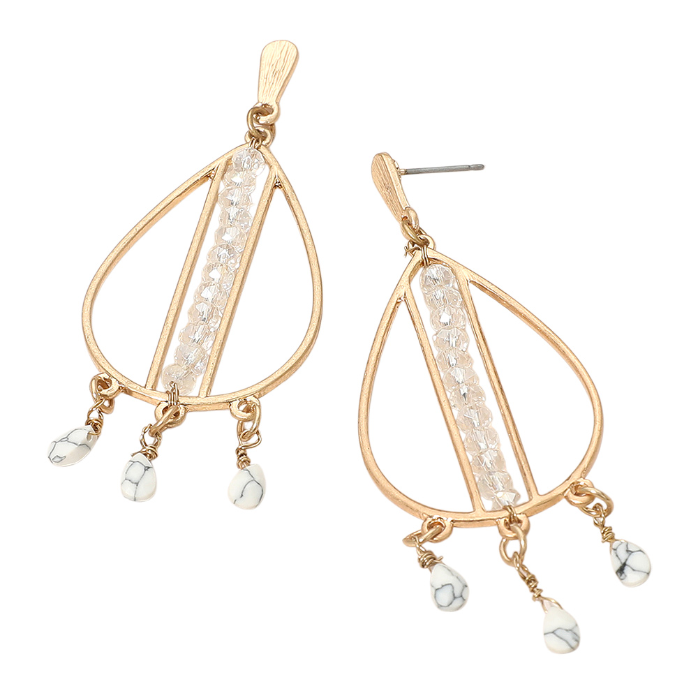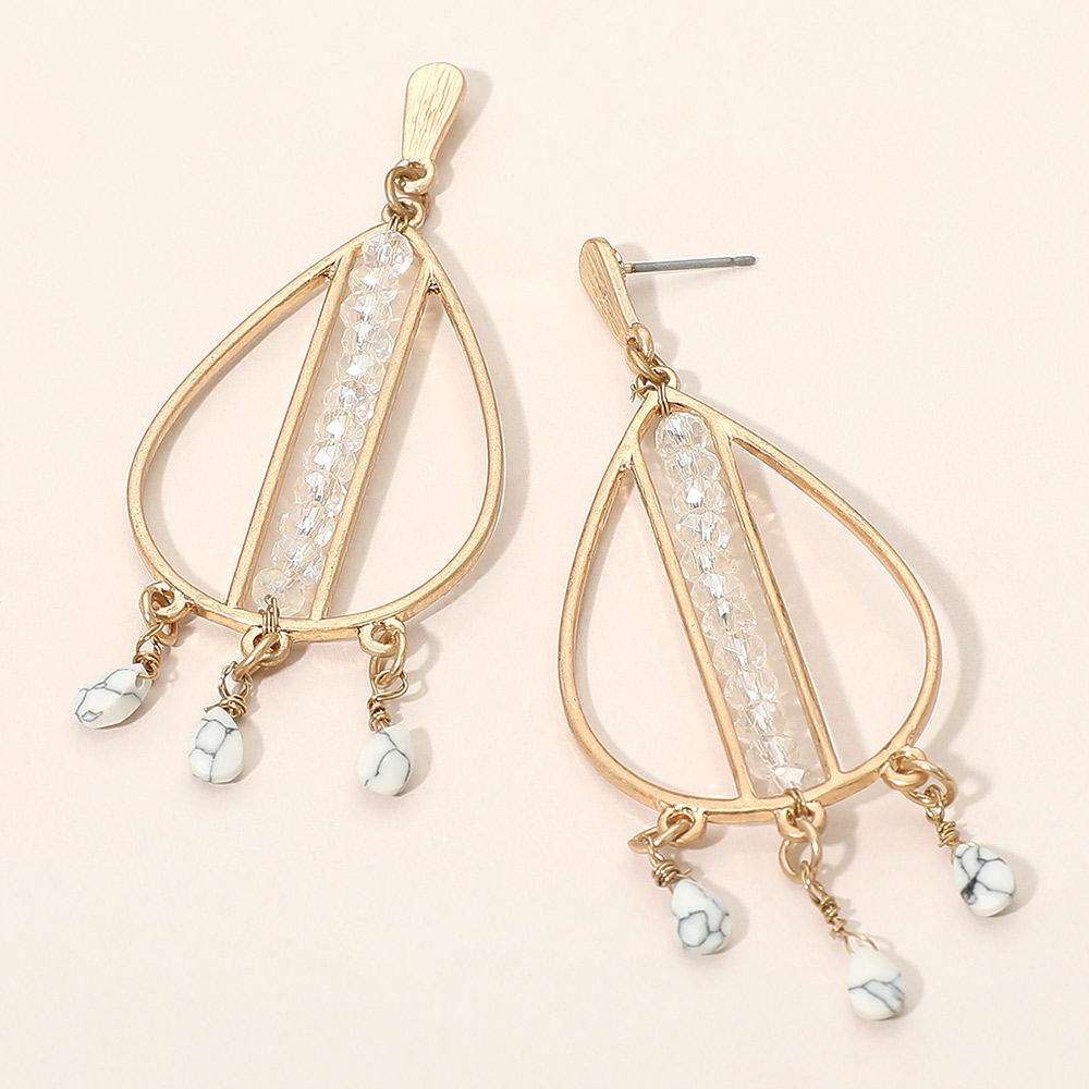Cutout Metal Teardrop Triple Natural Stone Dangle Earrings Cutout Metal Teardrop Triple Natural Stone Dangle Earrings