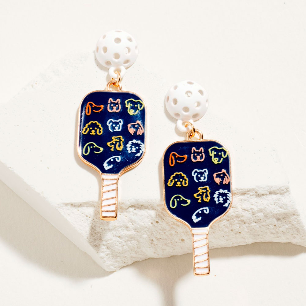 Details • Size : 0.7" X 1.75" • Post Back • These pickleball paddle drop earrings feature a playful ball accent and sporty paddle design that adds fun energy to any outfit. Lightweight and eye catching, they are ideal for game day looks, casual styling, gifting, or pickleball enthusiasts who want accessories that celebrate the sport with personality and charm. • Lead and Nickel Compliant