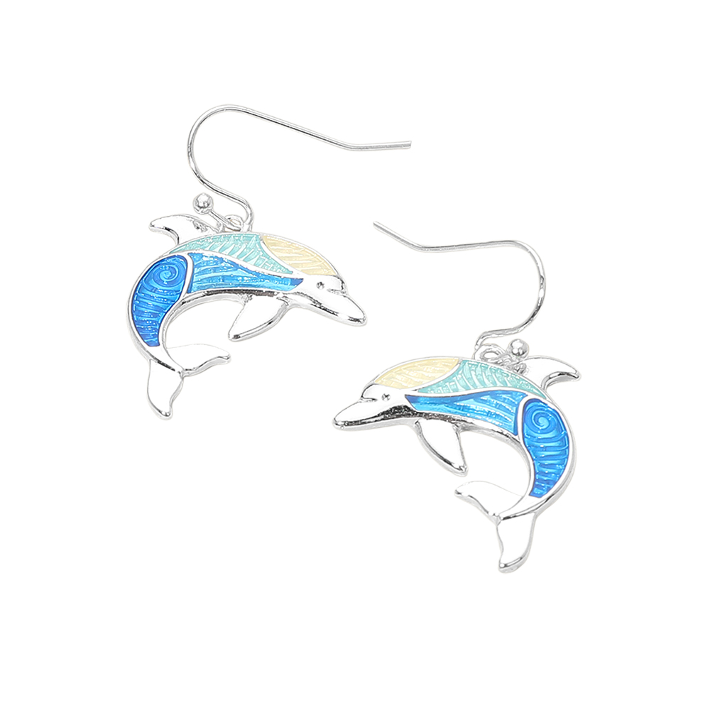 Details • Size : 0.8" X 1.3" • Fish Hook Back • Charming dolphin drop earrings featuring a graceful ocean-inspired silhouette with smooth detailing and lightweight movement. Perfect for everyday wear, beach vacations, coastal themes, and summer outfits, these earrings add a playful seaside vibe, cheerful personality, and a fun finishing touch to any accessory collection. • Lead and Nickel Compliant