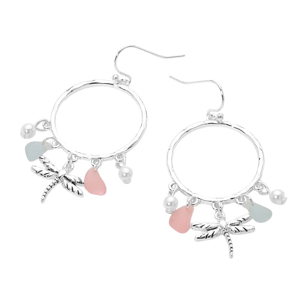 Dragonfly Sea Glass Charm Drop Open Ring Dangle Earrings