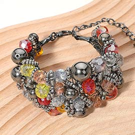 CZ Stone Pointed Cross Pendant Faceted Beaded Cinch Pull Tie Bracelet