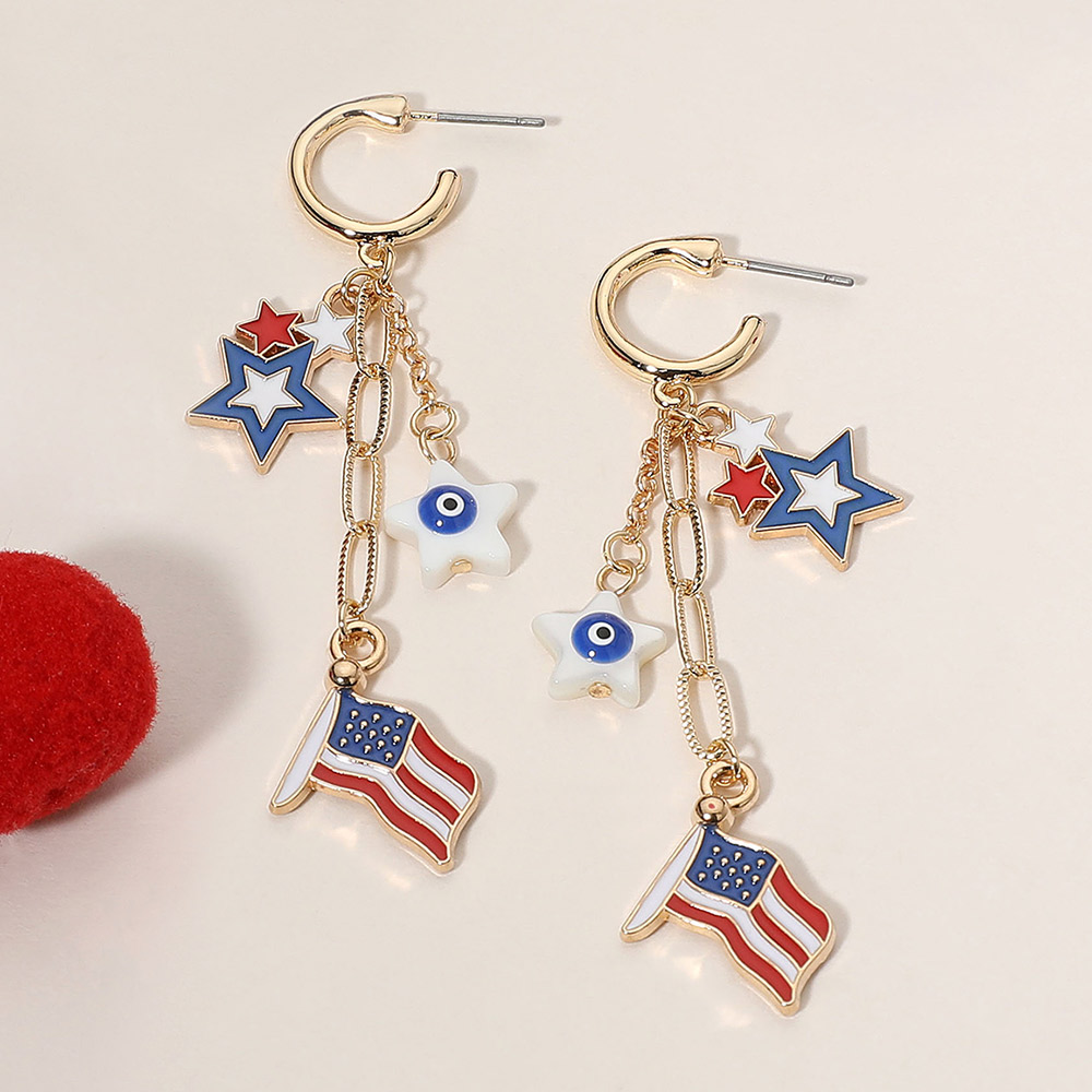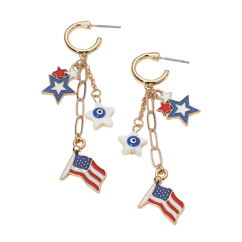 Enamel American USA Flag Star Charm Drop Dangle Earrings