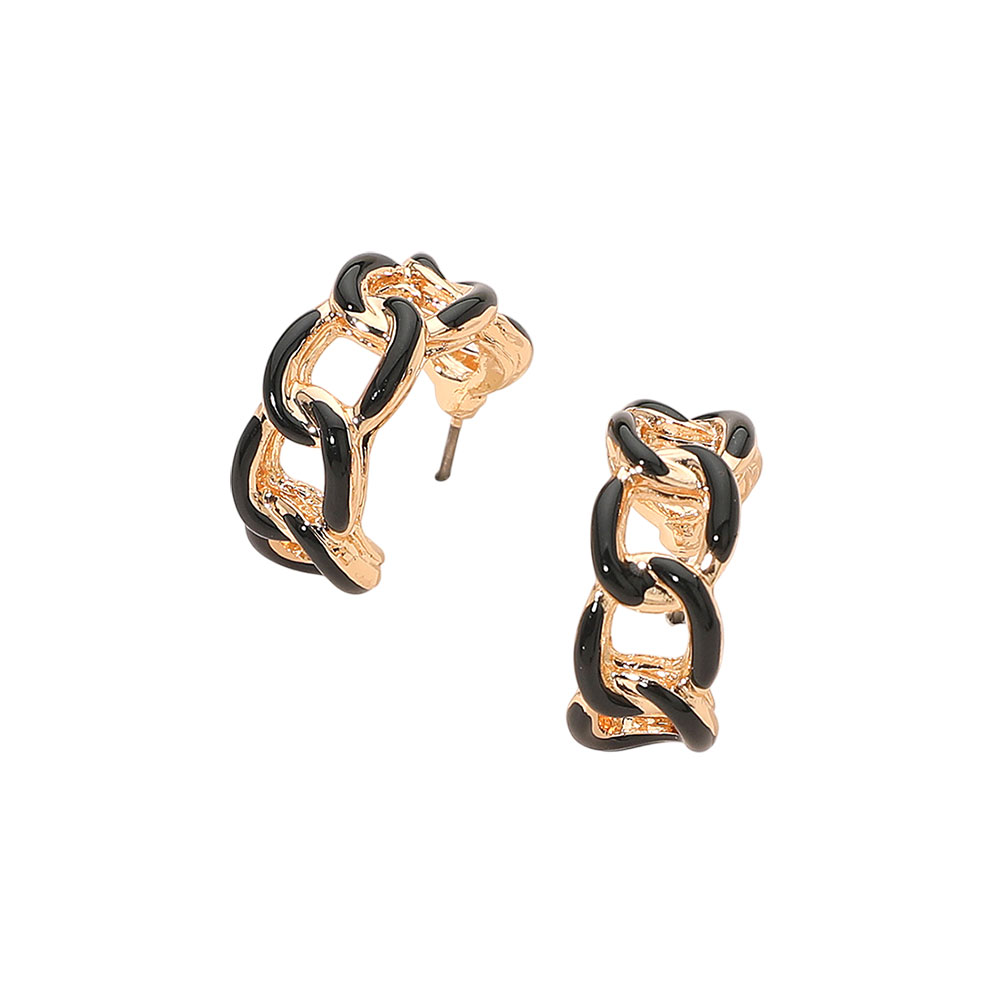 • Trend-forward mini hoops with a bold linked design that delivers modern edge and everyday versatility. Perfect for stacking or wearing solo, offering statement style in a compact silhouette for casual outfits or polished looks alike.