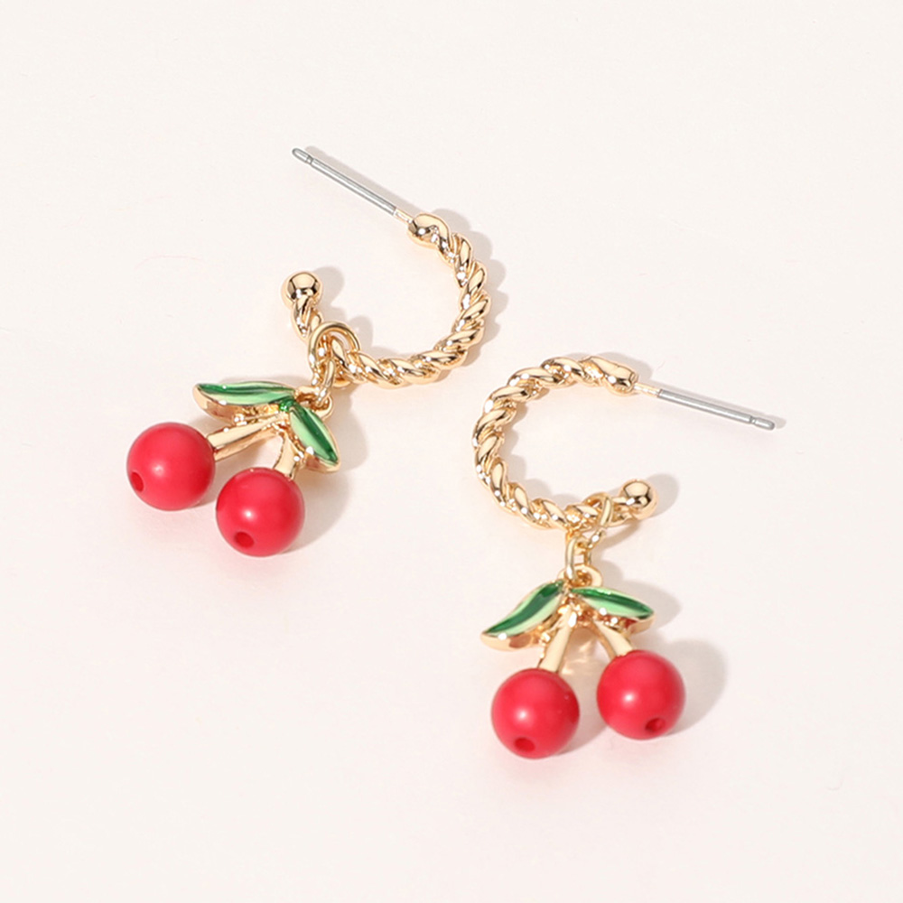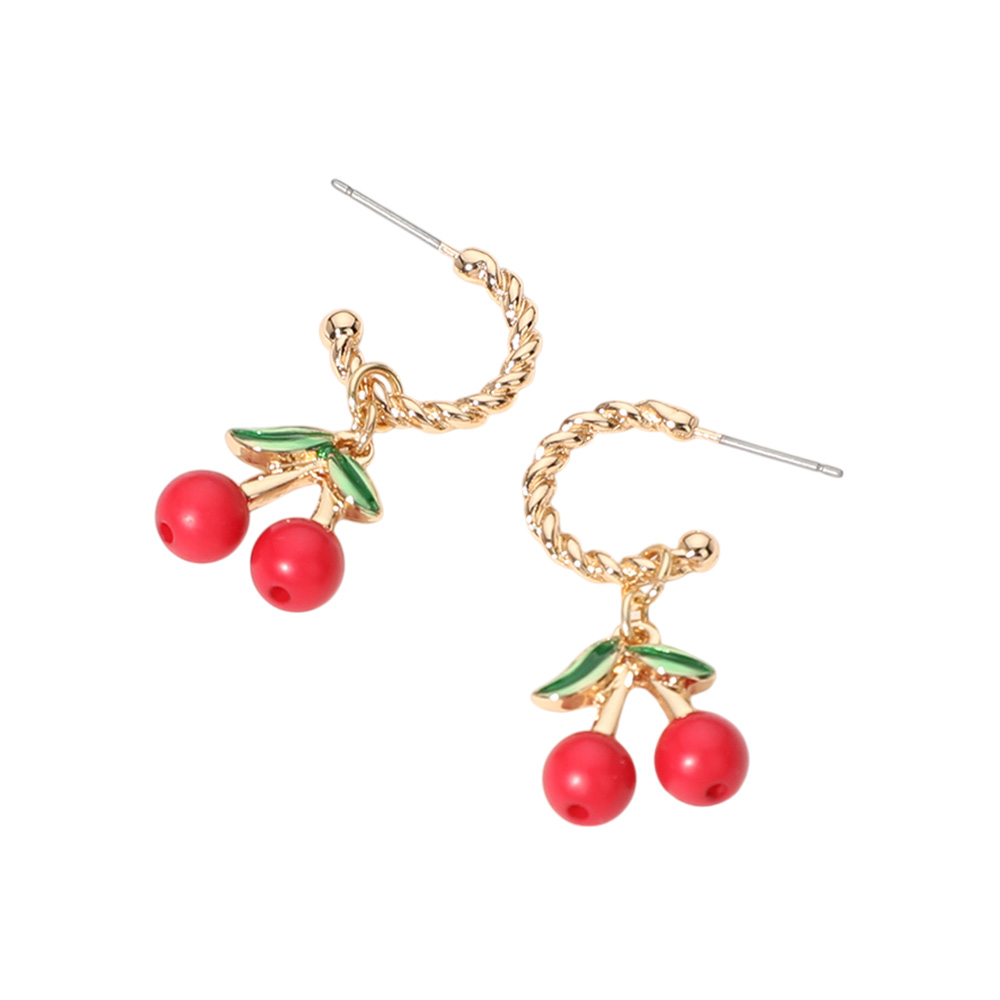 Enamel Cherry Dangle Hoop Earrings