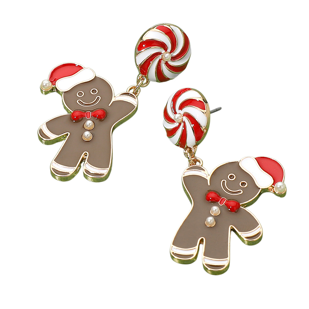 • Add a playful holiday touch with these charming gingerbread man earrings, featuring a cheerful design with candy-inspired details. Perfect for festive parties or seasonal gifting, they bring joyful character and sparkle to your Christmas style.