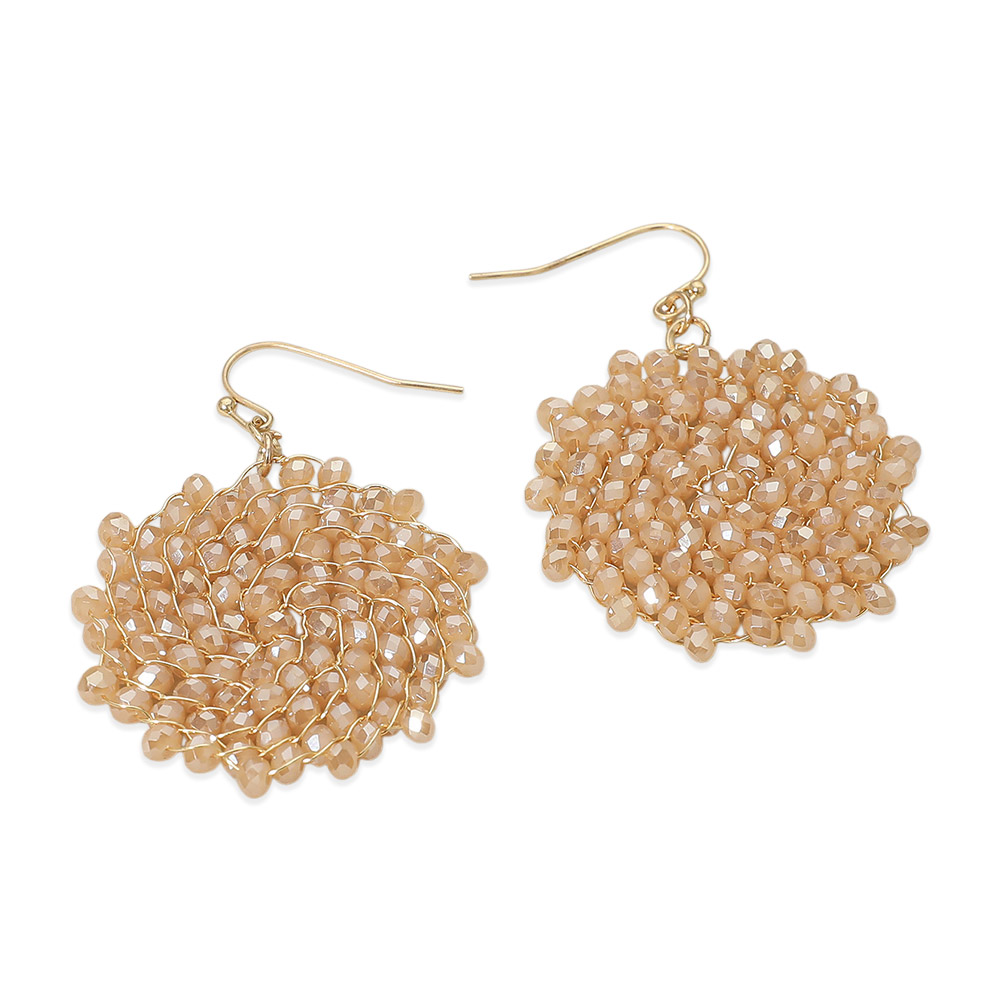 • Statement drop earrings featuring a handcrafted disc silhouette formed with clustered bead detailing. Designed to add movement and texture, these earrings offer a lightweight feel and eye-catching dimension, making them ideal for everyday styling, special occasions, and trend-forward accessory collections.