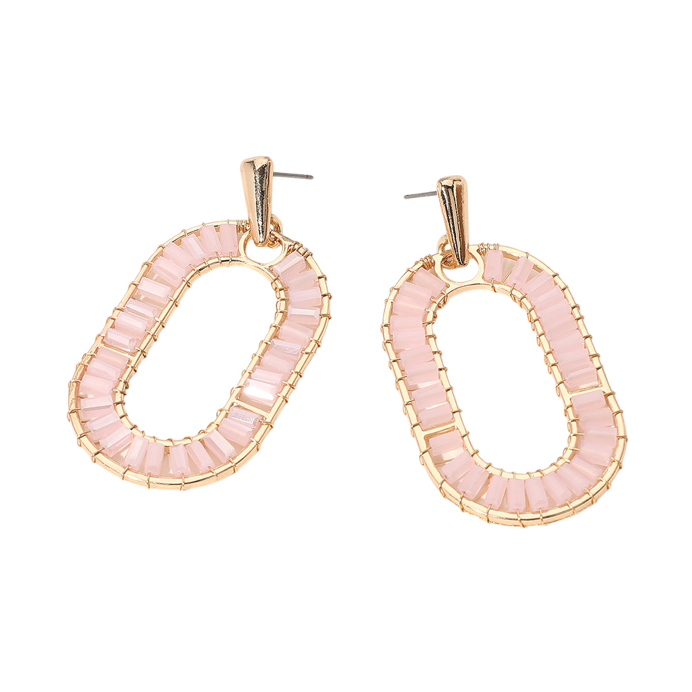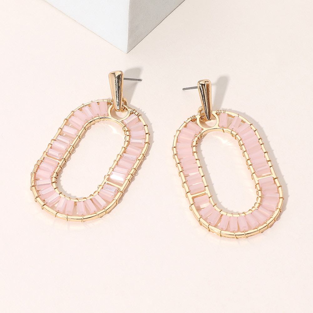 Faceted Beaded Wrapped Open Oval Dangle Earrings