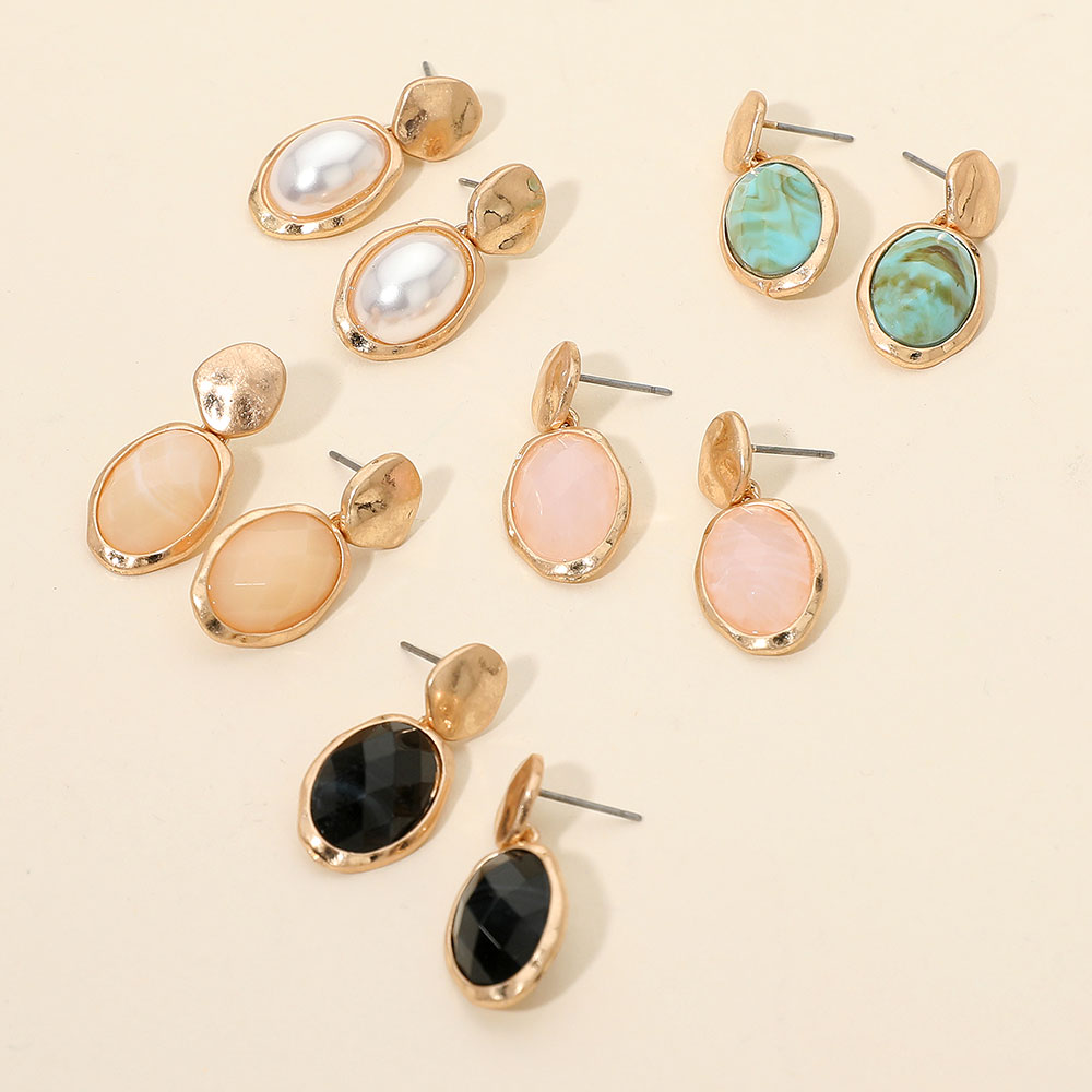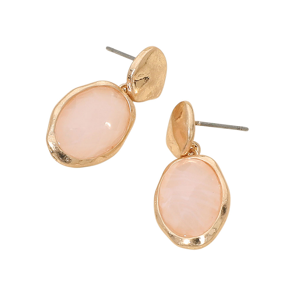 Details • Size : 0.5" X 1.2" • Post Back • These faceted oval drop earrings feature a striking gemstone-inspired center set within an organic, sculpted metallic frame. Versatile and lightweight, they add polished sophistication to everyday outfits or evening looks, making them a standout accessory for modern, elegant style. • Lead and Nickel Compliant