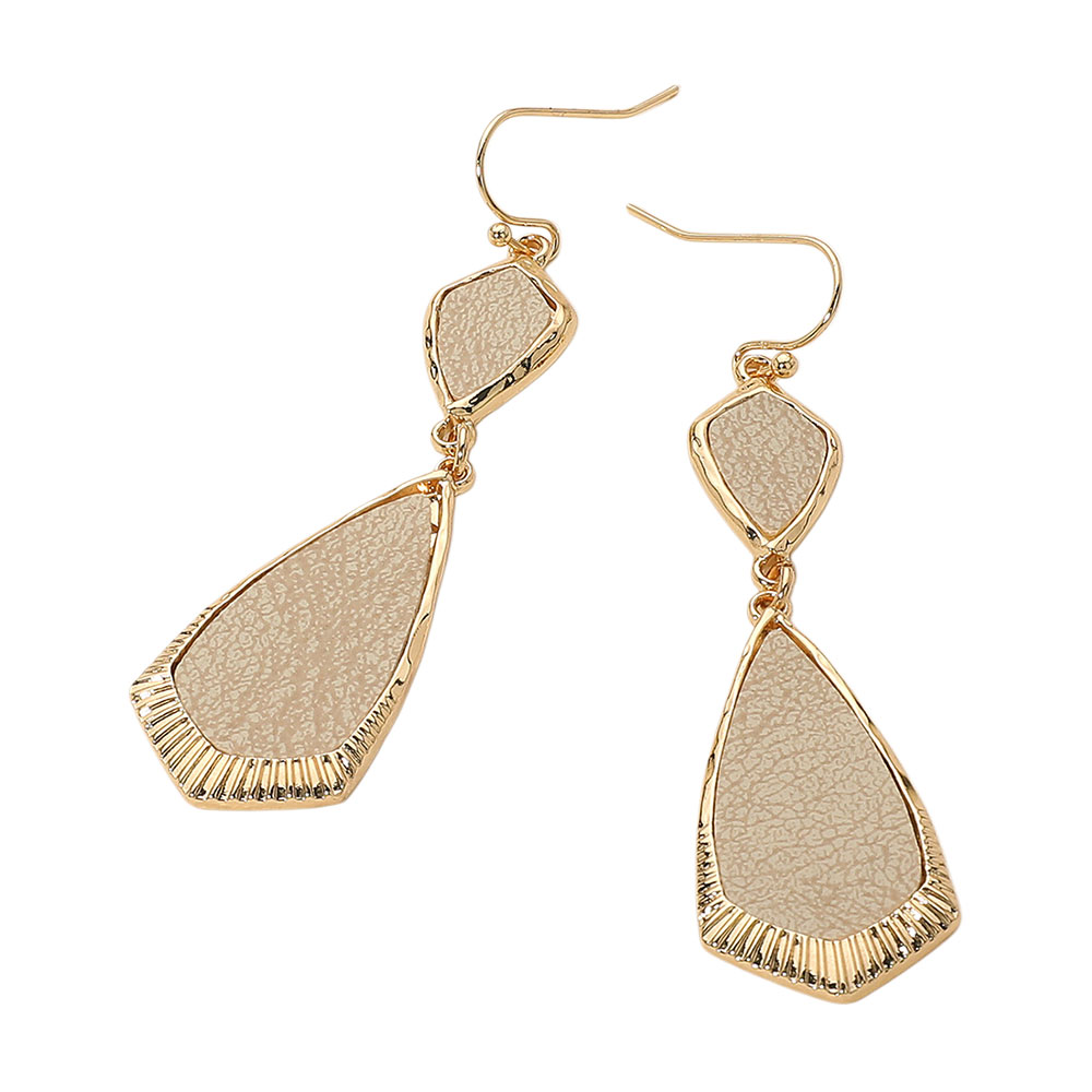 • Modern geometric drop earrings featuring a textured inlay and sleek metallic frame. Lightweight yet eye-catching, perfect for adding a contemporary touch to casual or dressy outfits.