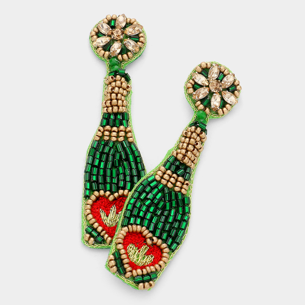 Felt Back Heart Accented Beaded Champagne Dangle Earrings
