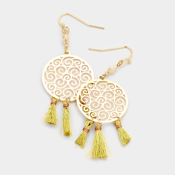 Half Hoop Filigree Metal Round Lucite Bead Dangle Earrings