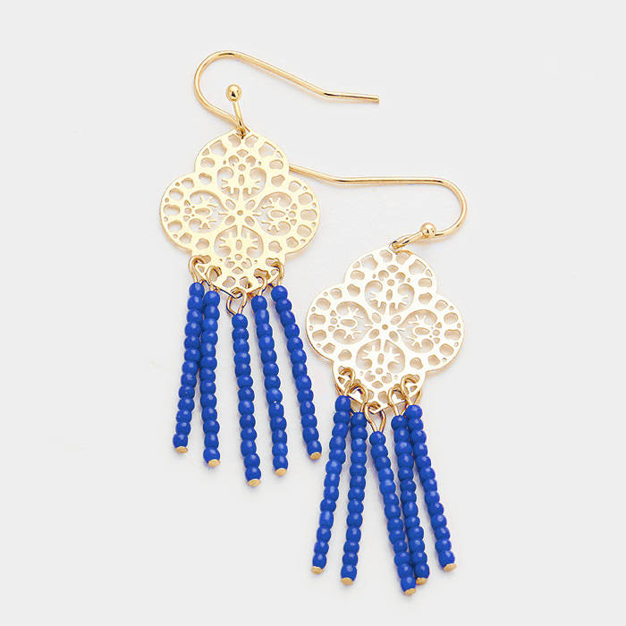 Filigree Metal Quatrefoil Beaded Tassel Earrings