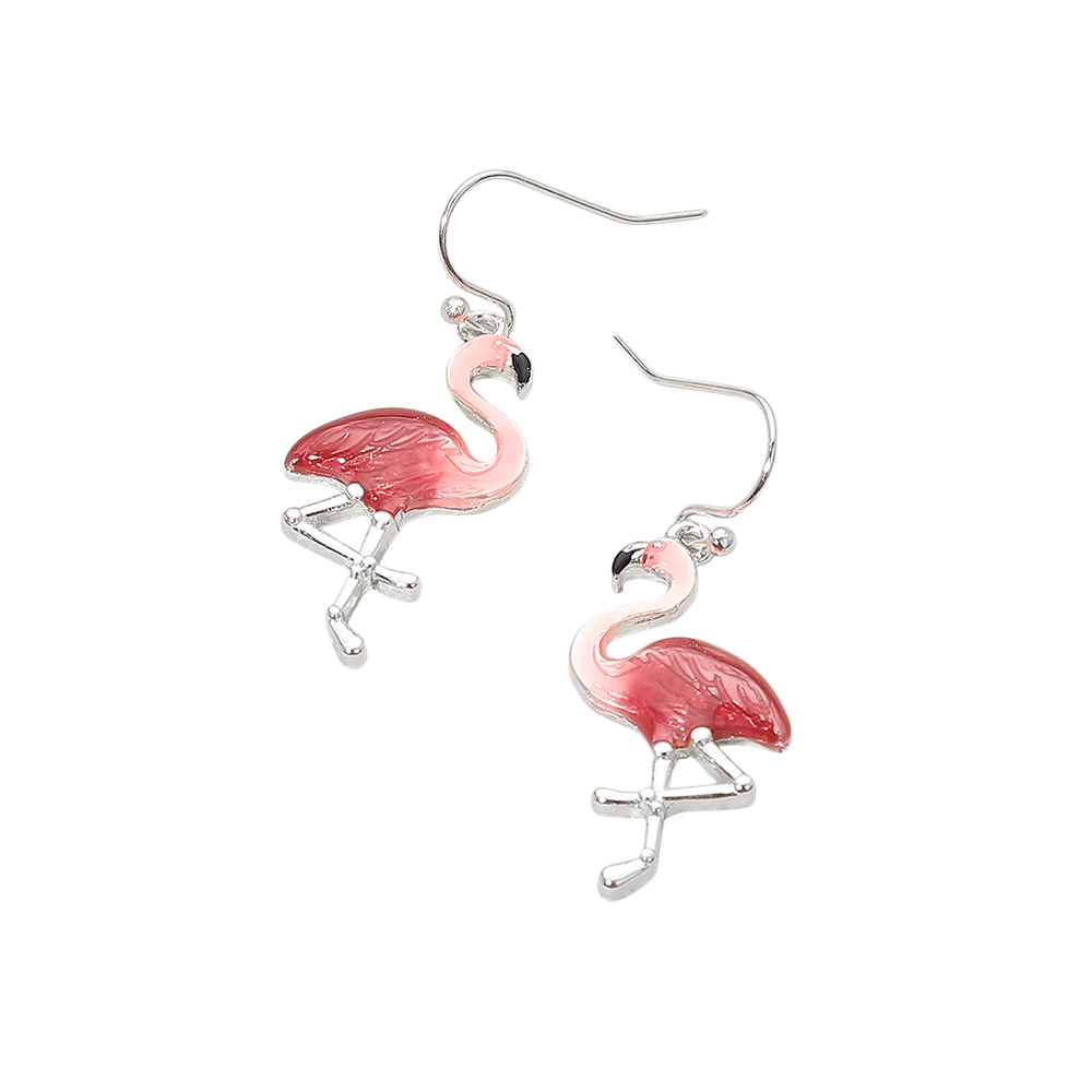 • Playful flamingo charm drop earrings featuring a sleek bird silhouette with graceful detailing and lightweight movement. Perfect for summer outfits, vacation styling, beach themes, and everyday wear, these earrings add tropical personality, fun flair, and a cheerful finishing touch to any accessory collection.