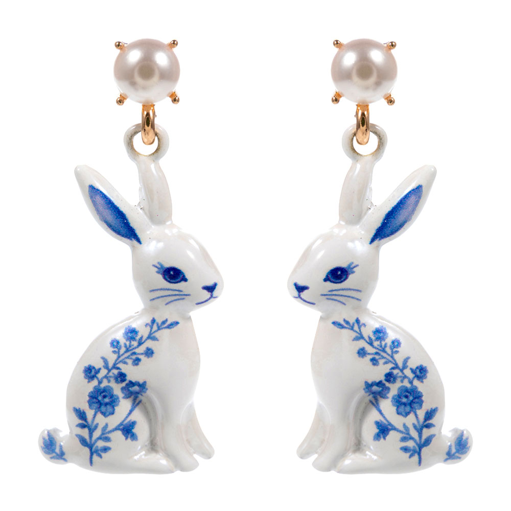 Details • Size : 0.75" X 1.5" • Titanium Post Back • Delicate drop earrings featuring a charming bunny silhouette with floral detailing and a classic stud top. Designed to add playful elegance to spring outfits, Easter celebrations, and seasonal gifting. A unique statement accessory ideal for boutiques seeking whimsical, collectible-inspired jewelry. • Hypoallergenic • Lead and Nickel Compliant