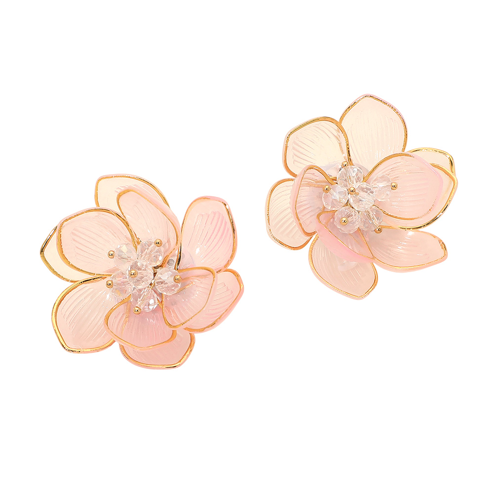 • These floral statement stud earrings feature a layered flower design that adds a refined, eye-catching touch to any look. Perfect for weddings, parties, and everyday wear, they offer a balanced blend of elegance and charm while elevating outfits with a timeless, feminine accent.