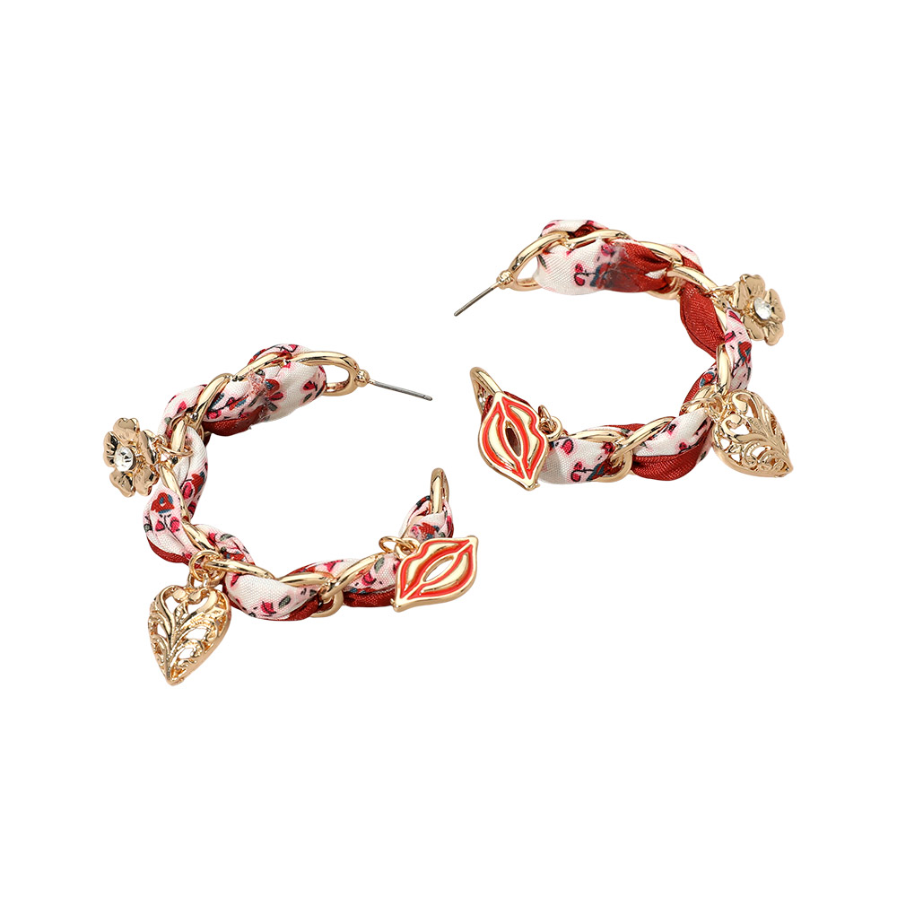 Flower Heart Lip Charm Fabric Scarf Hoop Earrings Flower Heart Lip Charm Fabric Scarf Hoop Earrings Flower Heart Lip Charm Fabric Scarf Hoop Earrings